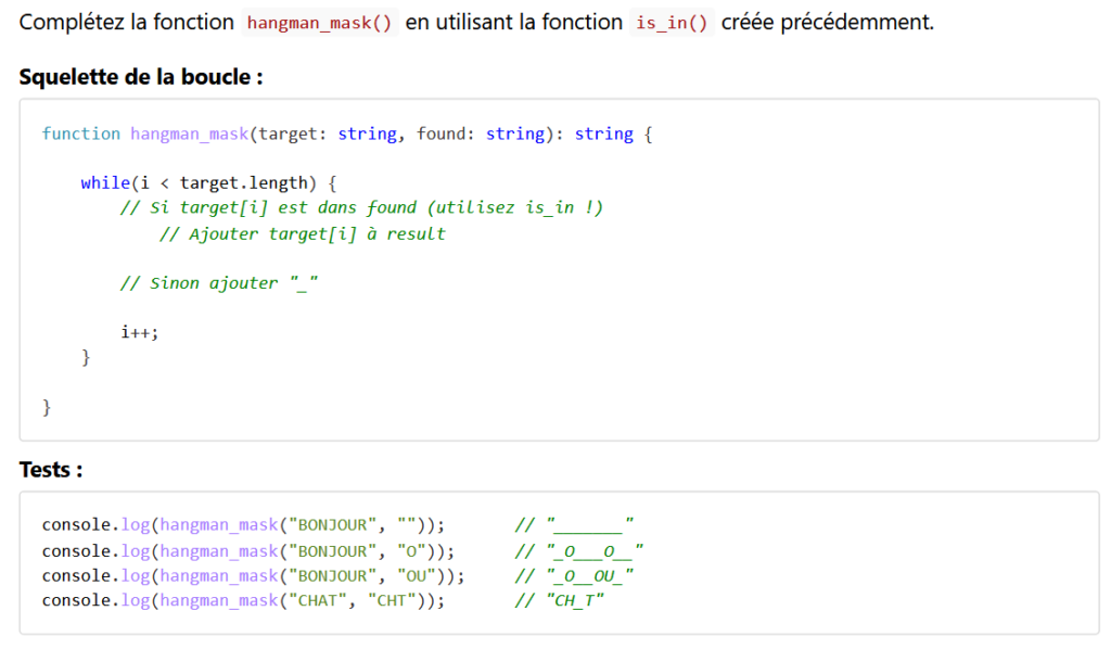 Ce projet m’a permis d’apprendre à gérer la saisie d’un utilisateur en TypeScript, à appliquer en situation réelle l’usage de constantes et à aborder la révélation partielle d’une chaîne de caractère masquée.